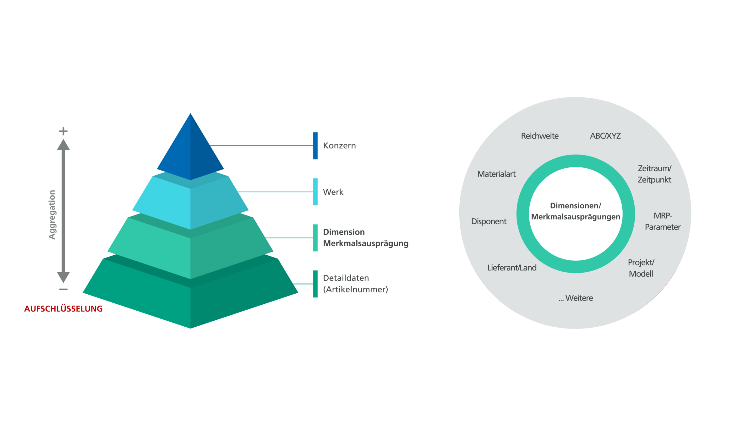 Dieses Modul verfügt über alle Funktionen, um sowohl Bestände als auch Reichweiten zu überwachen und Abweichungen schnell zu erkennen. Über die dynamischen Dashboards kann die Darstellung auch standortübergreifend oder im Drill-Down gezielt nach Produktgruppen bis hin zu Teilenummer-Ebene erfolgen, so z.B. zur schnellen Identifikation von Überreichweiten oder Slow oder Non-Movern, was wiederum eine erste Interpretation von Kausalitäten zulässt.
